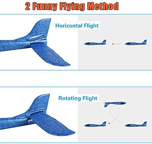 For All Ages – These foam airplane gliders were designed not only for kids, the whole family can enjoy the happy hours in open area such as backyard,sand beach,grasslands,yard,front door,park and other places.Helps promote parent-child relationships. 2 pcs foam inertia aerobatic airplanes included,allow children race with each other.Which will encourage kids to share and negotiate,let them learn about friendly competition while playing.