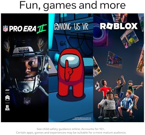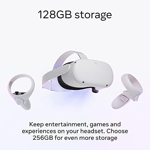 Meta Quest 2 is the all-in-one system that truly sets you free to explore in VR. Simply put on the headset and enter fully-immersive, imagination-defying worlds. A built-in battery, fast processor and immersive graphics keep your experience smooth and seamless, while 3D positional audio, hand tracking and easy-to-use controllers make virtual worlds feel real. Meet, play and build communities with people from all over the world. Start an epic new adventure, squad up with friends or add more fun to your fitness routine. Invite others into your VR experience by screen-casting to a compatible TV or screen as it unfolds. See child safety guidance online; Accounts for 10+.